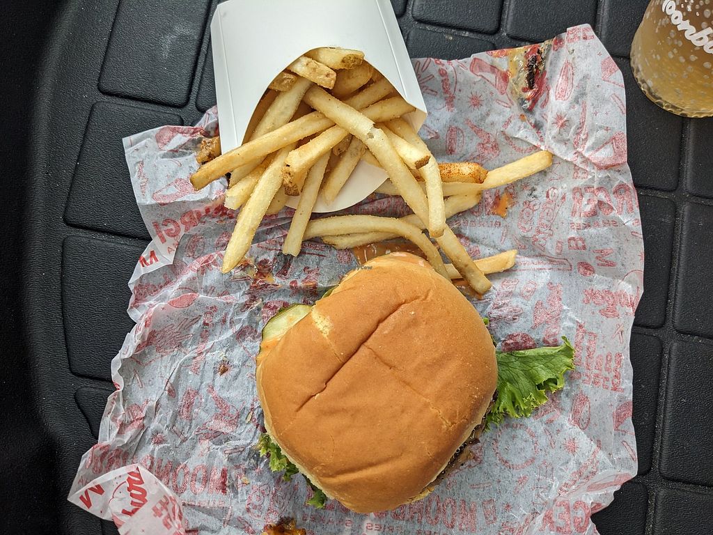 Read moreA unique drive thru place. The vegan cheeseburger and fries is a classic comfort combo and the flavor is great. They use the term "dairy free" instead of vegan just fyi but this option is vegan. I only wish they'd get rid of the dairy offering and go fully vegan. Or at least upcharge for the dairy cheese instead of the vegan cheese.