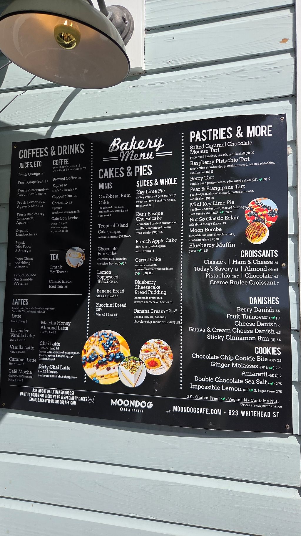 I went to Moondog 4 times during my 1 day Key West trip haha (3 days if you also count arrival and departure). The pastries I tried were the key lime pie and the raspberry and key lime turnover and both were incredible!! I also had the tacos another night, the pumpkin spice latte, and the strawberry matcha which were all also delicious. Serving sizes were generous and staff were helpful and friendly. Would go back every day for the rest of my life if I could, if you’re in key west you can’t miss this vegan key lime pie.