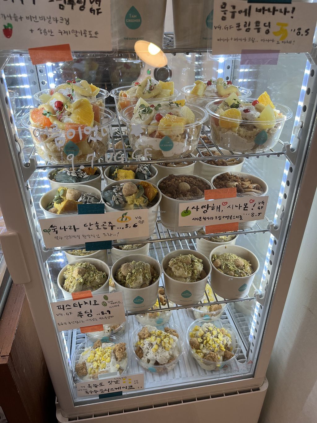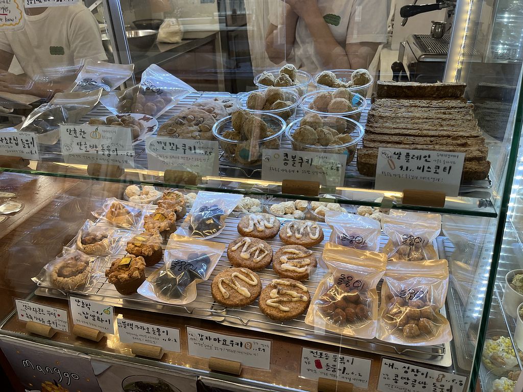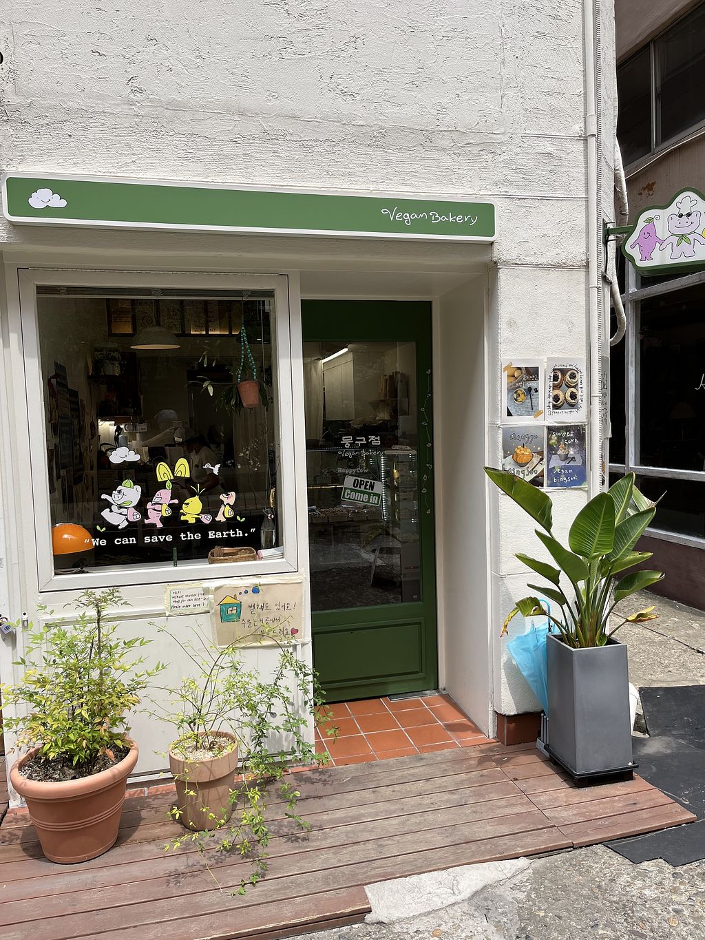 This vegan bakery is so cute and located on an alleyway with some other cafes and bakeries. They have a small drinks menu and a range of baked and refrigerated goods with many clearly labelled gluten-free options. Very lovely and friendly staff. I got a gluten-free hotteok cookie (cookie with cinnamon sugar and walnuts stuffed inside). It was deliciously crispy and sweet.