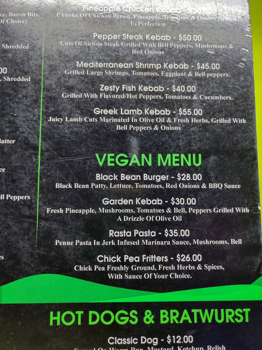 There were 4 vegan items on the menu, I ordered the Rasta Pasta, it came with Parmesan. Parmesan?! That's not even vegetarian let alone vegan. When I challenged the chef, he said "that's the way we make it here". Totally clueless and the waitress appeared to find it funny that there was cheese on the dish.