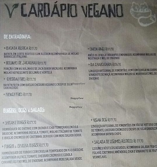 - Shitake Burger : Vegan shitake, quinoa and chia seeds burger in a brioche bun. Arugula, tomatoes, italian sauce made of tomatoes and creamy macadamia cheese. Served with a small green salad. R$ 28,99