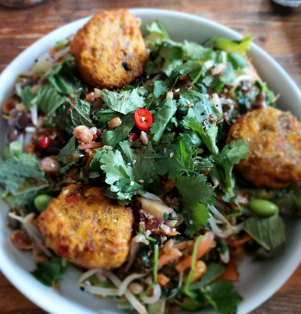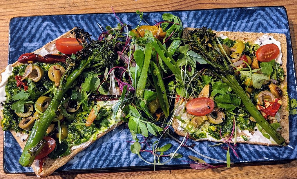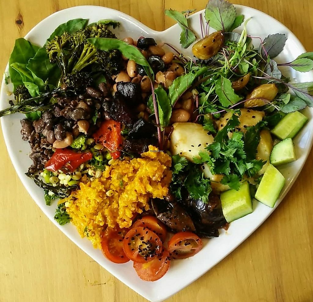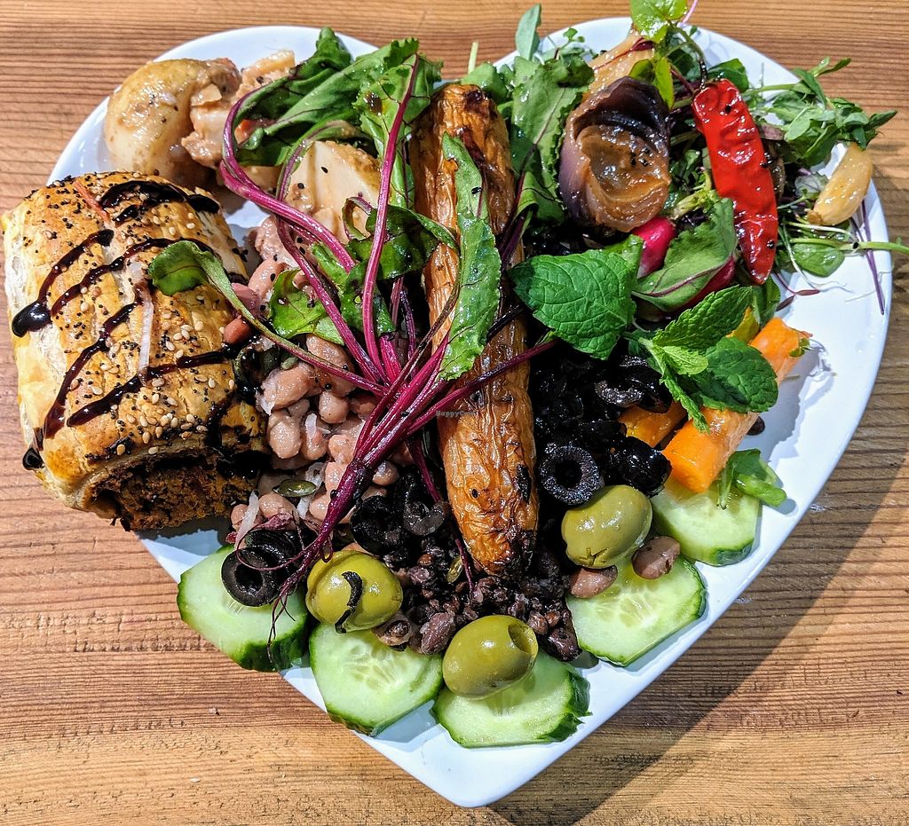Salad with a really good pie with carrots and walnuts. Really tasty.