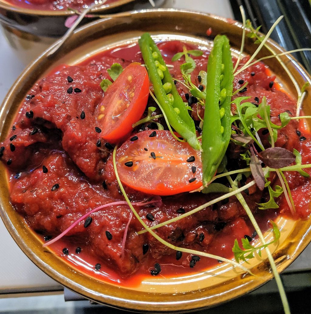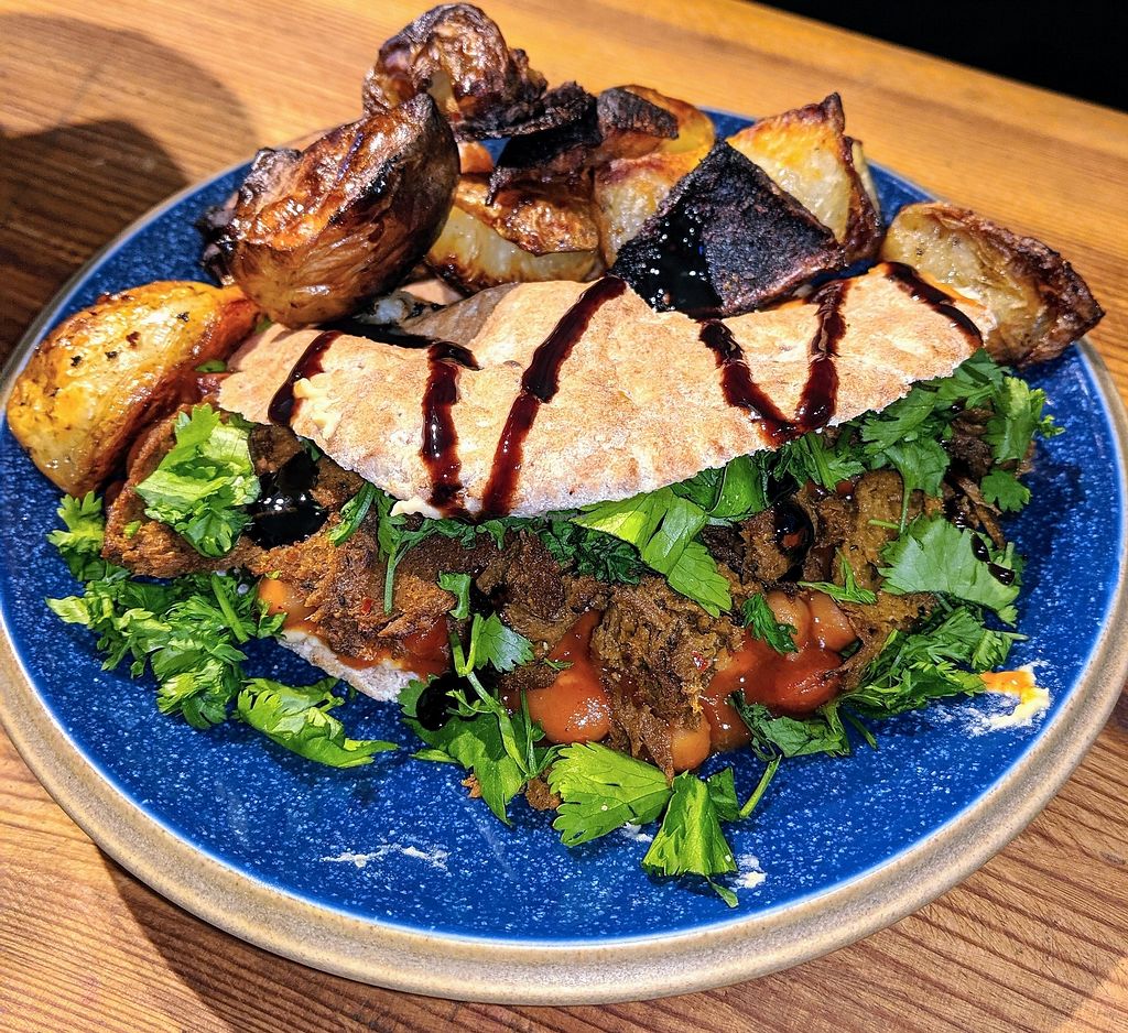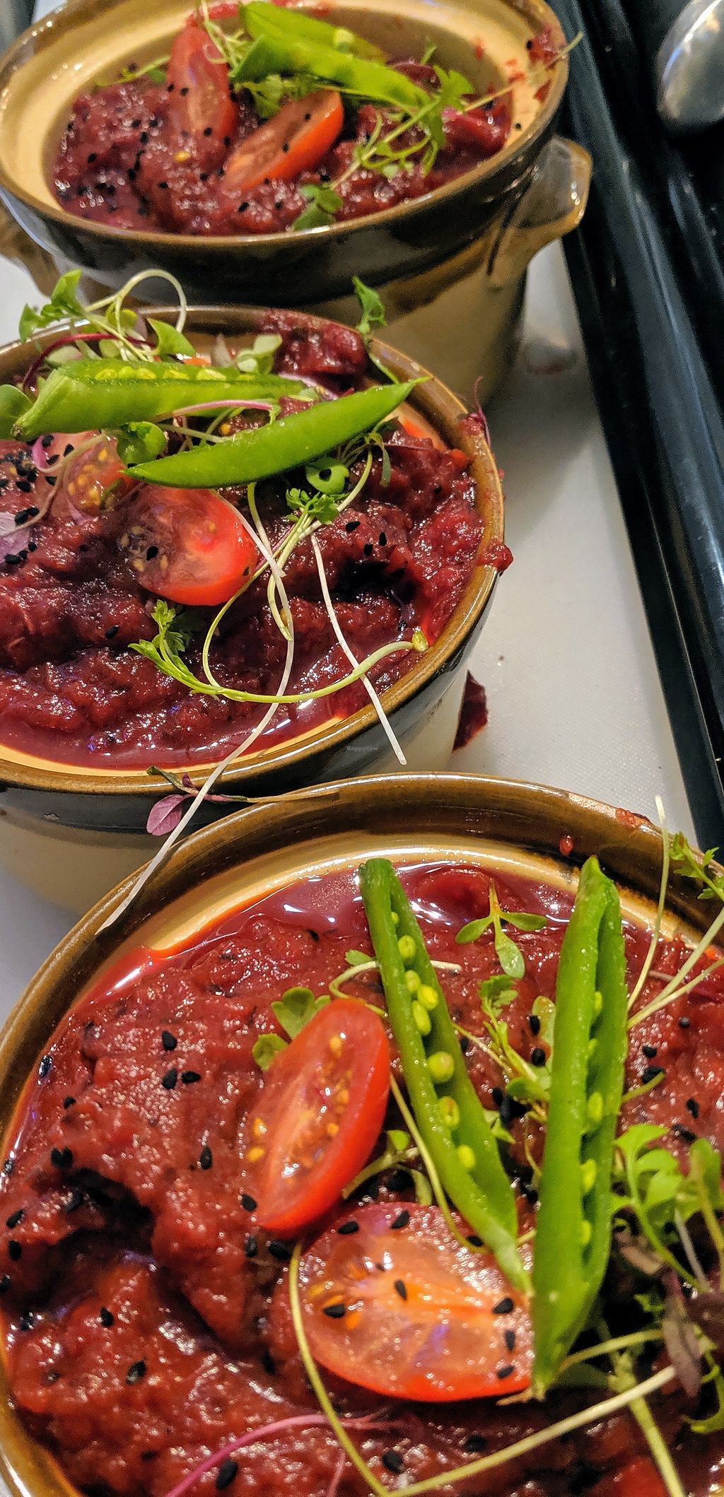 Salad with a really good pie with carrots and walnuts. Really tasty.