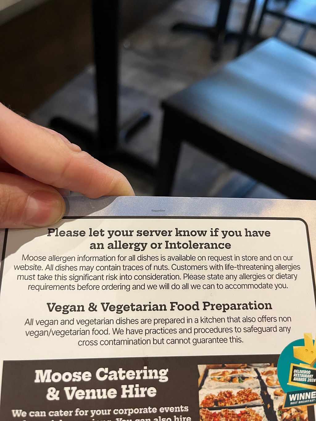 It’s the first time I see such level of detail in the menu about the fact that a non-vegan place is trying their best to cater to vegans while still putting a disclaimer about possible cross-contamination (which I fully understand). It’s very well located right next to the Manchester Piccadilly station.