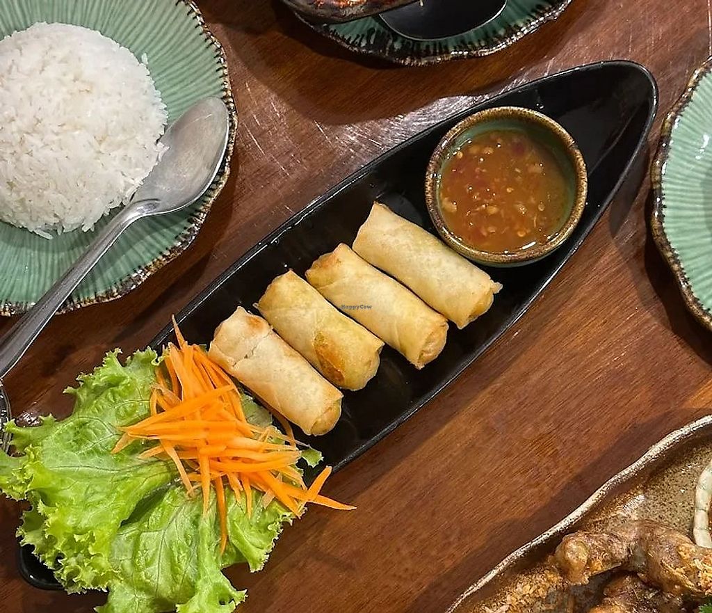 Serves meat, vegan options available. Thai restaurant with a vegan menu. Vegan dishes include pad thai, khao soi, and Panang curry with tofu. Open Mon-Sun 10:00am-10:00pm.