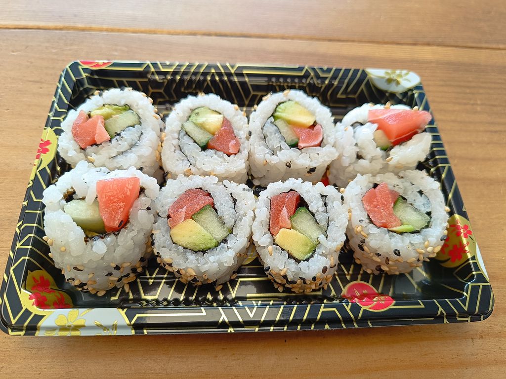 This takeaway sushi shop has plenty of vegan options! They’ve also included vegan salmon and vegan tuna!. Personal regular order is the sushi platter called 727. Vegetarian assorted set 27 pieces and the chef special rolls, 675. Fried sweet tofu futomaki roll. If you have any concerns with ingredients they’ll happily tell you and let you read the packaging for items. Also they have a loyalty points system if you’re into that.