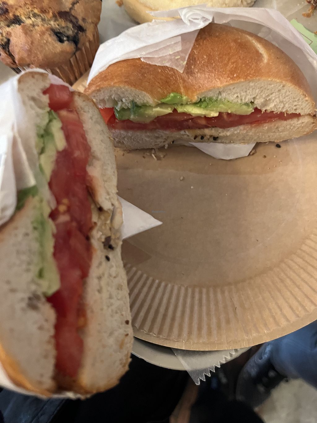 vegan bagel with avocado and tomato