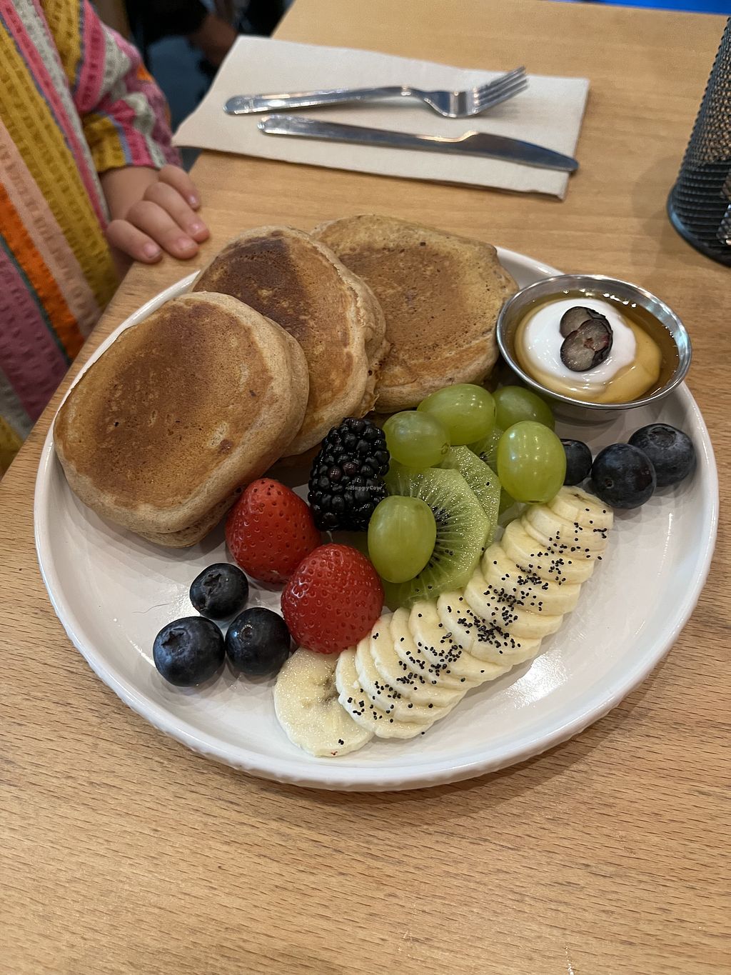 Kids menu! Cinnamon pancake with fruits, yoghurt and syrup!