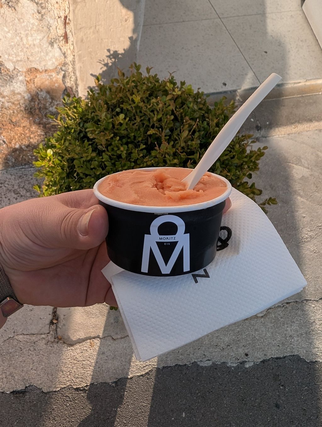 Had lots of sorbet options, I got blood orange and my boyfriend got pineapple. they were nice but not especially so. It was 3.50 euros for one scoop which is also quite expensive