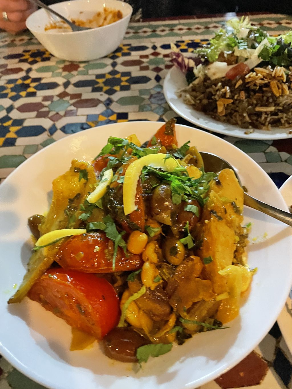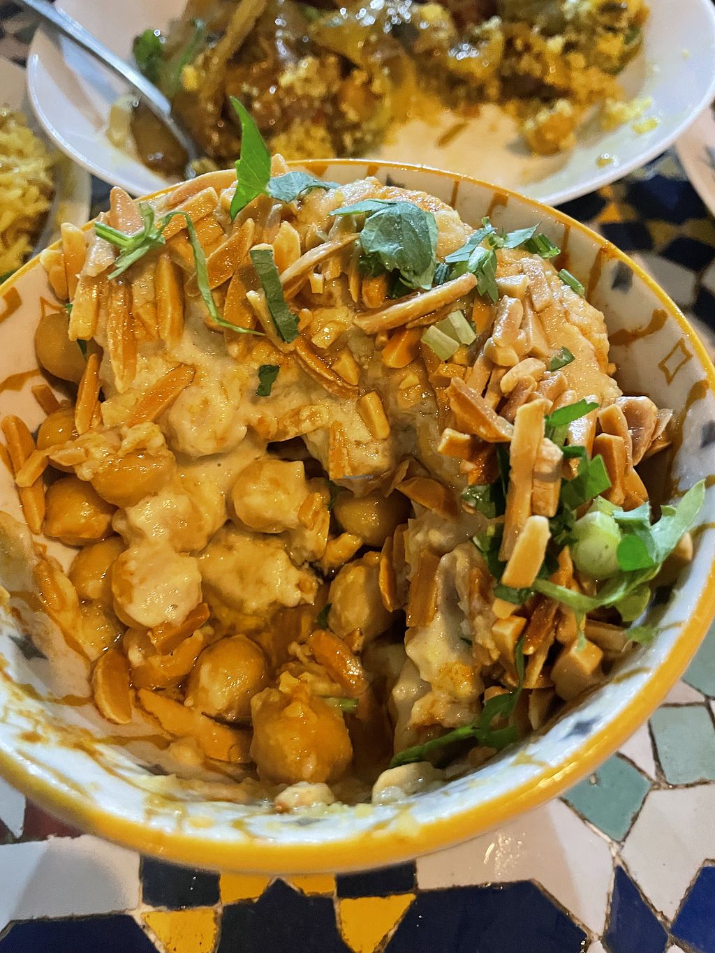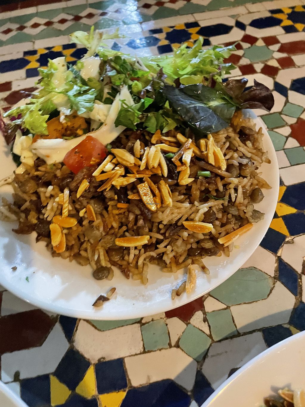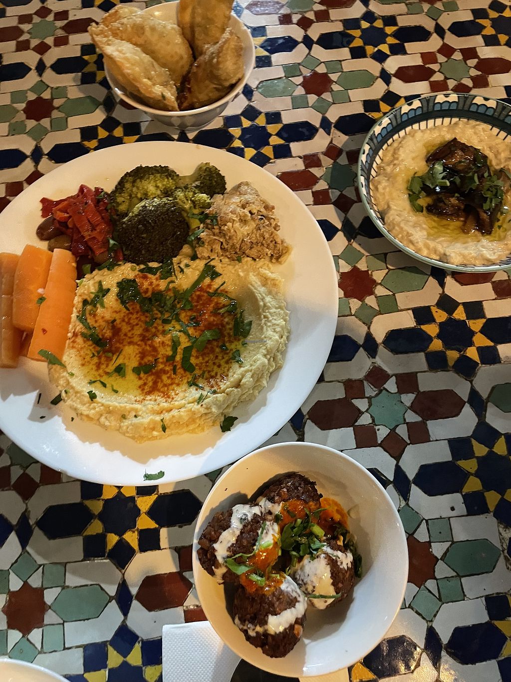 Warm atmosphere, enjoyable Moroccan music in background. Super food, spoken menu, sample plate is a good way try sll the kitchen has to offer for the day. Loved the lentil spinach soup. Wonderful spices used.