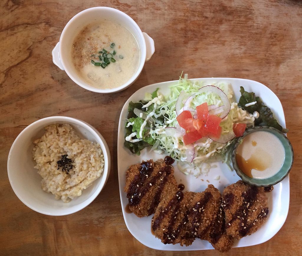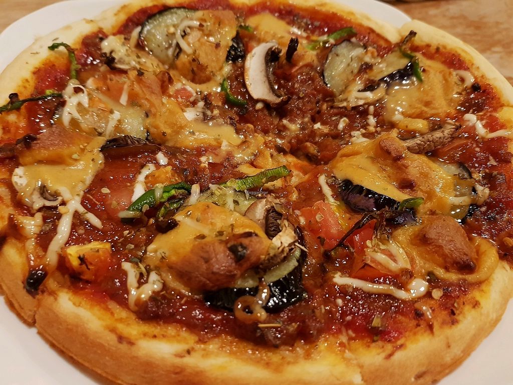Soy milk cream pasta. Tasty, but mushrooms and corn were a surprise.