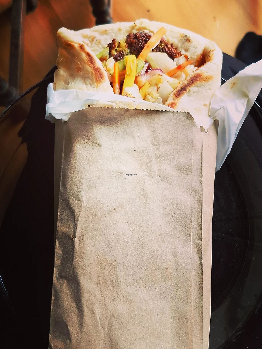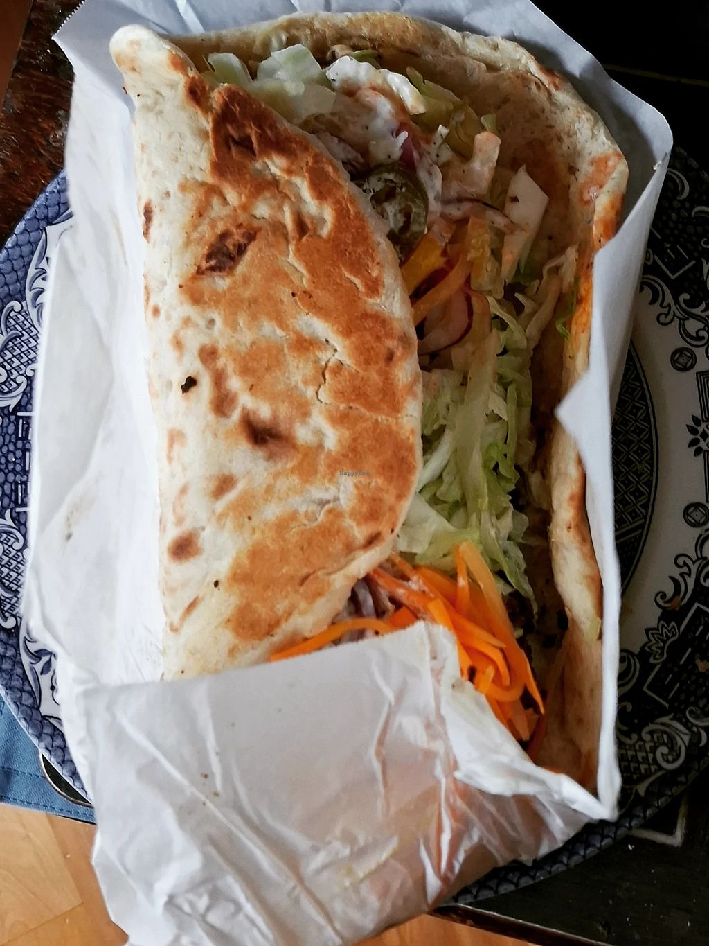 No hummus, but they add a little tahini instead. Kebab fell apart a bit.