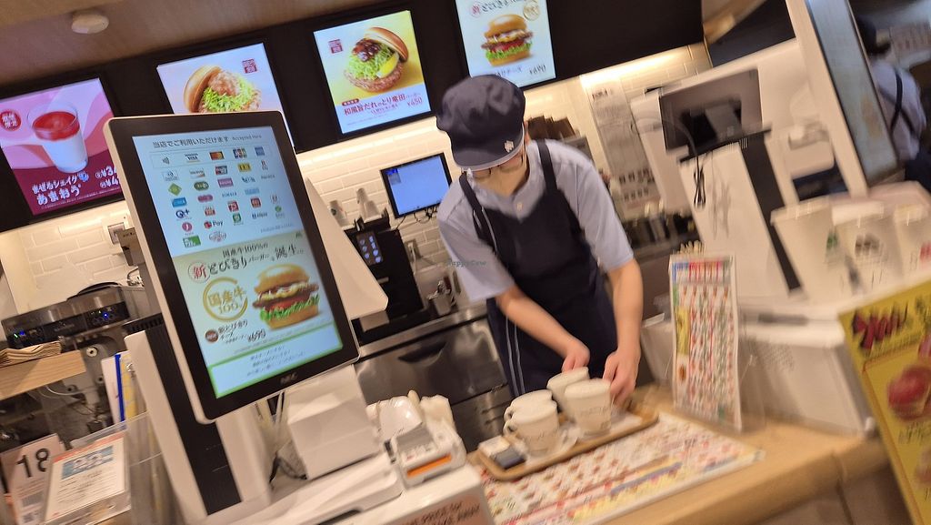 Serves meat, vegan options available. Fast food burger restaurant introduced a plant-based 'green burger' in 2020 that's all vegan. Some locations have vegan fries and onion rings. Japan-based brand with franchise outlets in countries across the eastern and southeastern hemispheres including Australia. Open Mon-Sun 9:00am-9:00pm.