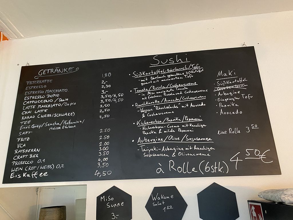 My sister and I had lunch at this place and can’t recommend it enough. It’s located in a nice area close to Planten un Blomen. It’s an all vegan place offering vegan sushi. While the menu is small it’s a very delicious and new selection of rolls- not your regular vegan maki you get everywhere. The sauces are really tasty ( we loved the sesame one in particular). It’s clean and the interior is welcoming and warm. The owner was very nice and we felt right at home. Will definitely return whenever will be back in Hamburg.