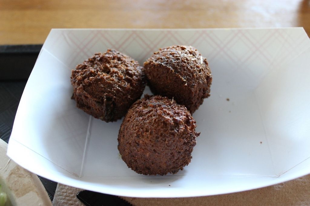 I stopped into Moshe's Golden Falafel in San Antonio, a 100% vegetarian restaurant (but some items contain dairy and there are boiled eggs). It is create-your-own (Chipotle style) where you start with a choice of a pita sandwich or platter with a base of either classic "green" falafel (with parsley and herbs), or spicy "red" falafel (with hot harissa). There are about 20 choices for toppings...I piled on: hummus, Israeli cucumber salad, beets, spicy carrots, zucchini, roasted garlic, fried cauliflower, cold chickpea salad, and Israeli couscous salad. The best thing on the plate was the zucchini, I could snack on that all day. This meal was super delicious, filling, and inexpensive. I recommend Moshe's highly!