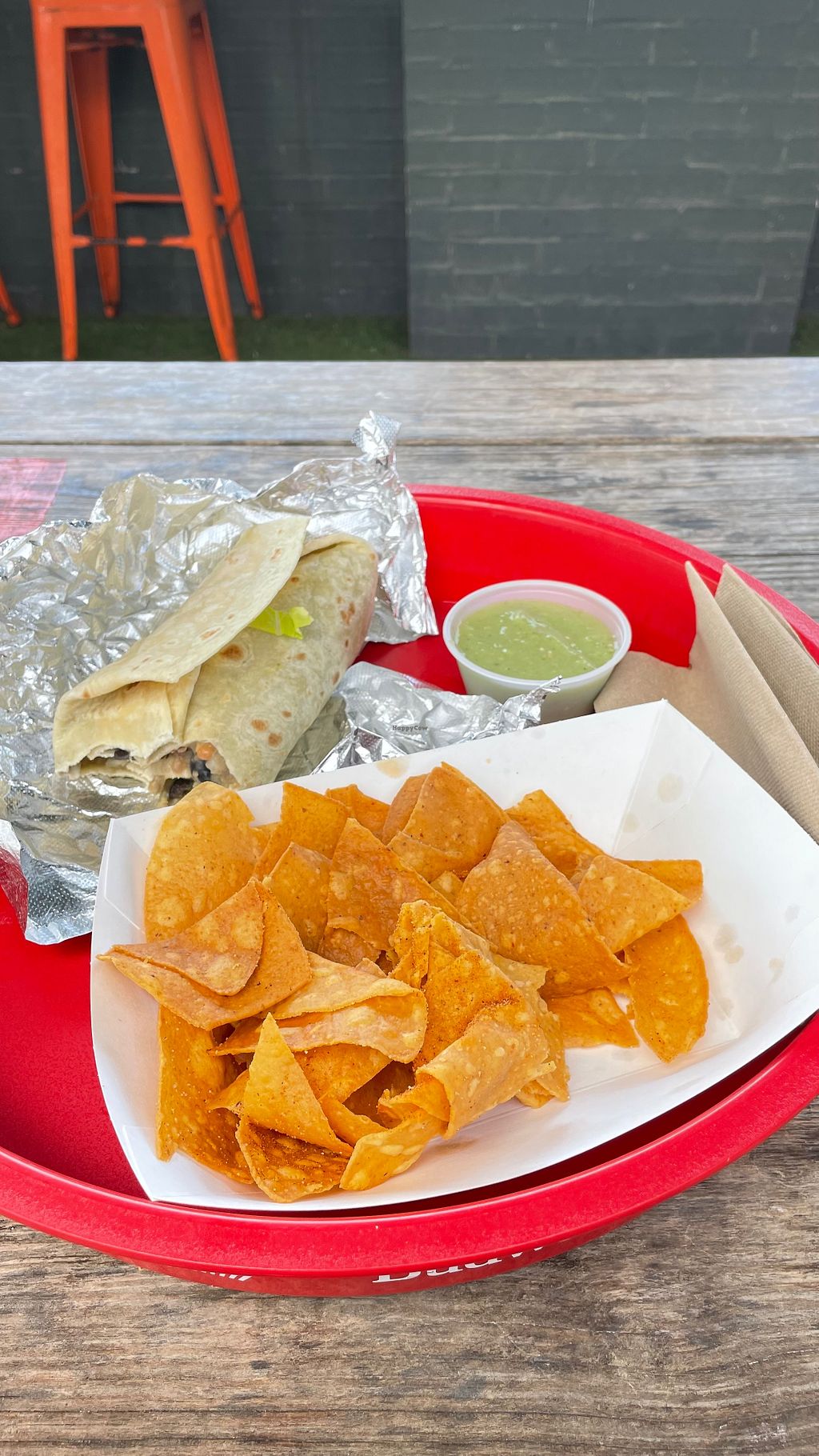 This was a great spot to have lunch when I was in town. The day I visited, they were out of Beyond Meat, but they still had black beans and refried beans, so I wasn't disappointed. As soon as I asked for Beyond Meat the employee asked me if I was vegan or vegetarian and told me that the rice is cooked in chicken broth. I really appreciated that she knew to bring that up. The house made salsa verde was delicious and the burrito was filling and hit the spot. Fun and quirky atmosphere. I loved the covered patio area. It has picnic tables and bar seating that looks out to the road. The service was good and the price was very good for the amount of food I ordered.