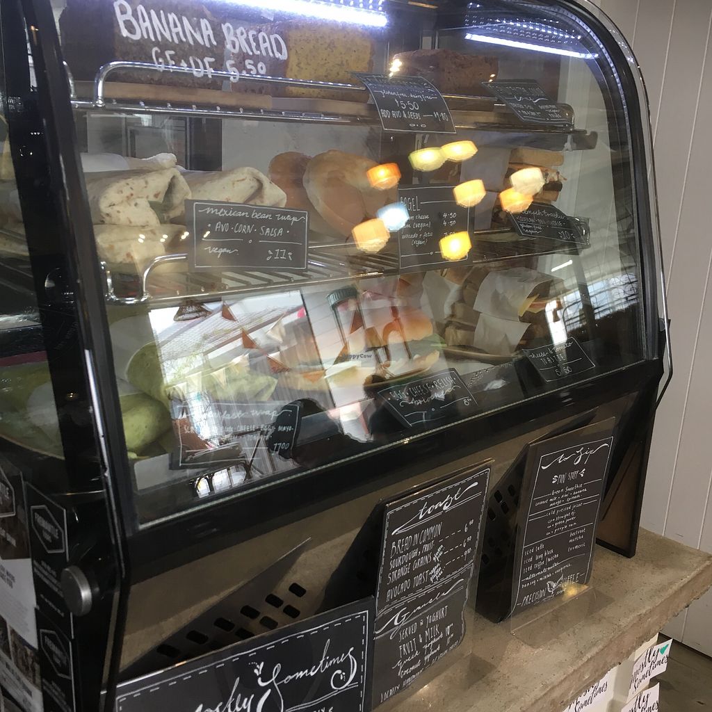 Offers coffee, juice, sweet treats, and light meals. Several vegan options available which are clearly marked. Examples include avocado and vegan feta bagel, tempeh toastie, vegan brownies, vegan fudge cookies and bliss balls. Reported closed February 2022.