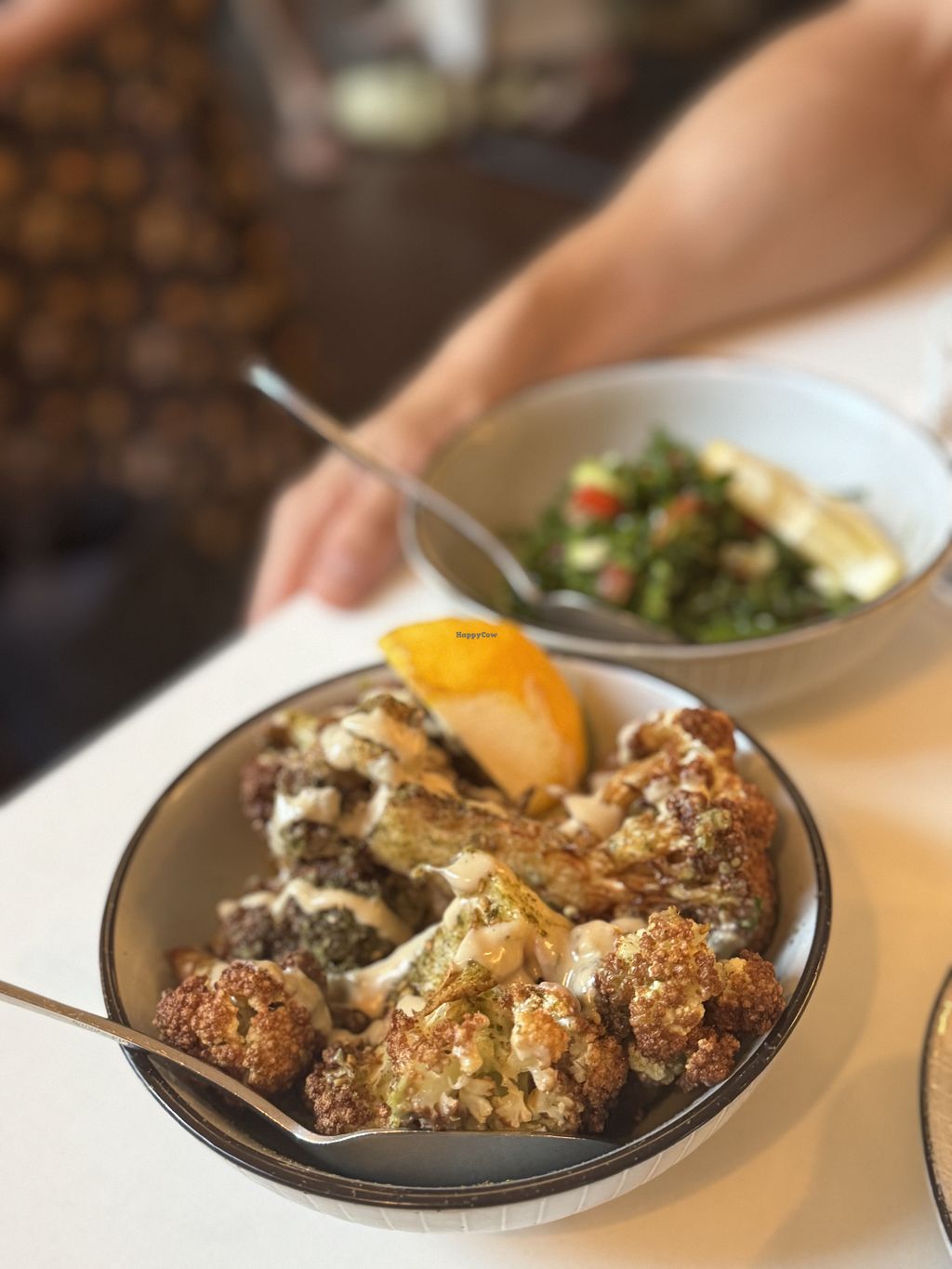 Beautiful restaurant in converted bank! Yummy leb food! Heaps of dishes marked vegan such as falafel, dips, tabouli & fattoush salads, coriander potato, vine leaves, pana cotta