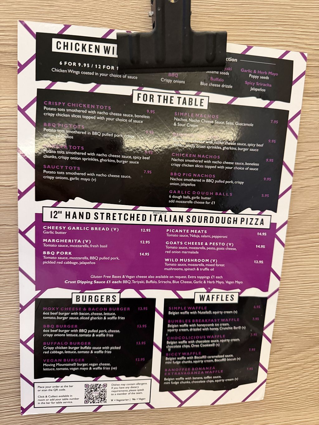 Me and my partner were staying at this hotel while visiting some friends and I was surprised to see a menu in our room with multiple vegan options. There were 5 menu sections and all of them had a vegan option! Most of the food is only served between set hours but the pizza is served 24/7. We both ordered the BBQ Jackfruit Pizza at the bar. It was brought to us quickly and was lovely and hot and fresh. It tasted really good, with a delicious stuffed tomato crust and fresh ingredients. It was also only £9 which I feel was good value. The hotel itself was amazing and staying somewhere that has great vegan options is rare so I would definitely recommend it!
