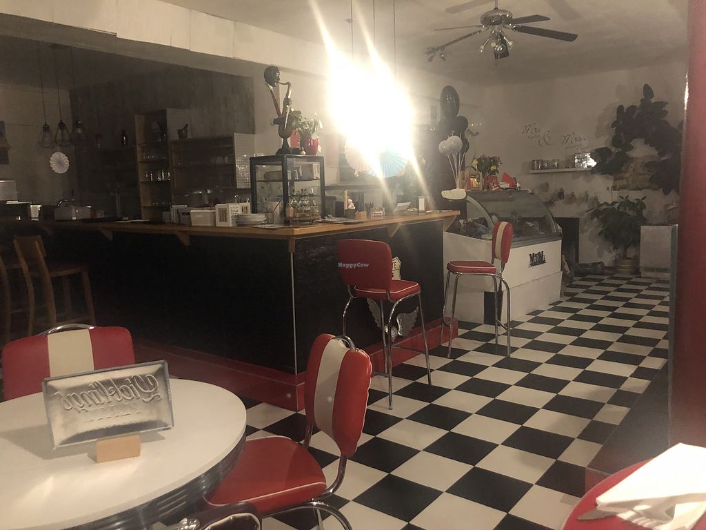 Große, tolle Location im Stil der 50er Jahre. Vielfältige Speisekarte, alle Gerichte sind in vegan möglich! Pizza, Mac'n'Cheese, Hot Dog, Steak, Pancakes, Waffeln, Eis, Milchshakes.. Angenehme Preise, hervorragender Geschmack. Ganz liebe Inhaber! Super hundefreundlich, auch dieser wurde total verwöhnt mit Hundeeis (ebenso vegan) und Co. Machen Eis selbst, auch für Diabetiker gibt's welches. Veranstalten Kindergeburtstage, Kino, Karaoke,..