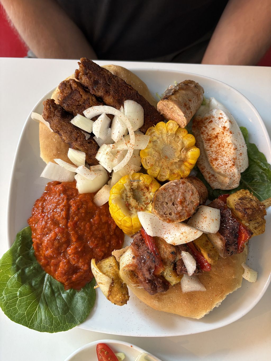 Mein persönliches Highlight, die Griechische Platte ( Vorbestellung) und zum Nachtisch einen Milkshake.