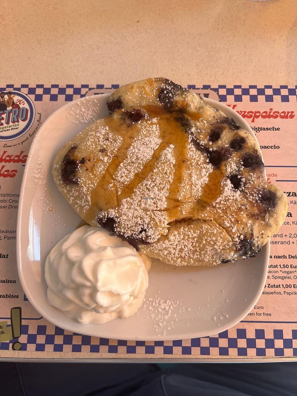 Vegetarian American diner. Menu may include mac 'n cheese, an American breakfast, waffles, pancakes, Caesar salad, American pizza mit Käserand, wraps and more, some of which may be vegan or could possibly be made vegan. The vegan steak and the chili con plane are clearly labeled vegan. Companion animal friendly. Open Wed-Fri 17:30-21:00, Sat-Sun 12:00-21:00. Closed Mon. Public Holidays: 9:00 am - 9:00 pm.