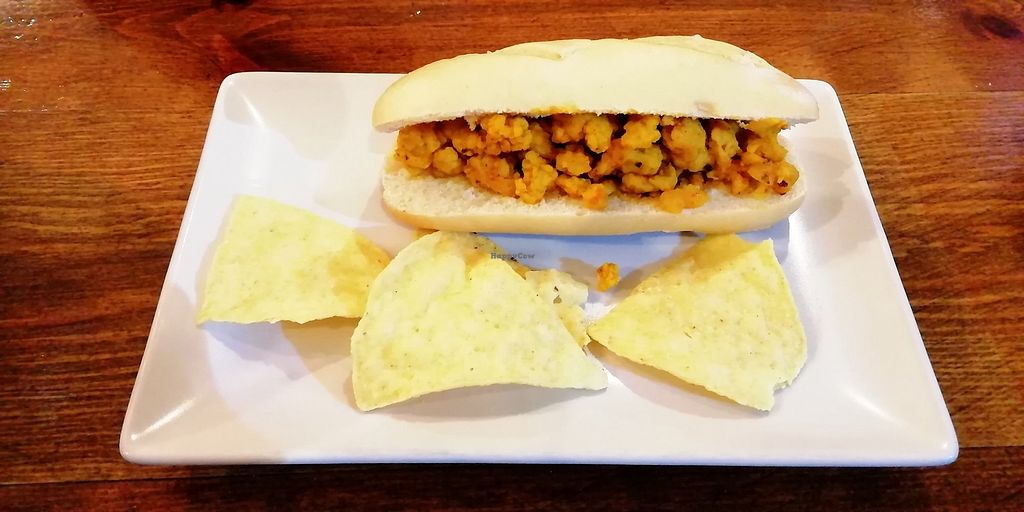 Serves meat, vegan options available. Bar and restaurant offering labeled vegan options to include lentil burgers, quinoa meatballs, hot dogs, and more. Reported closed October 2021.