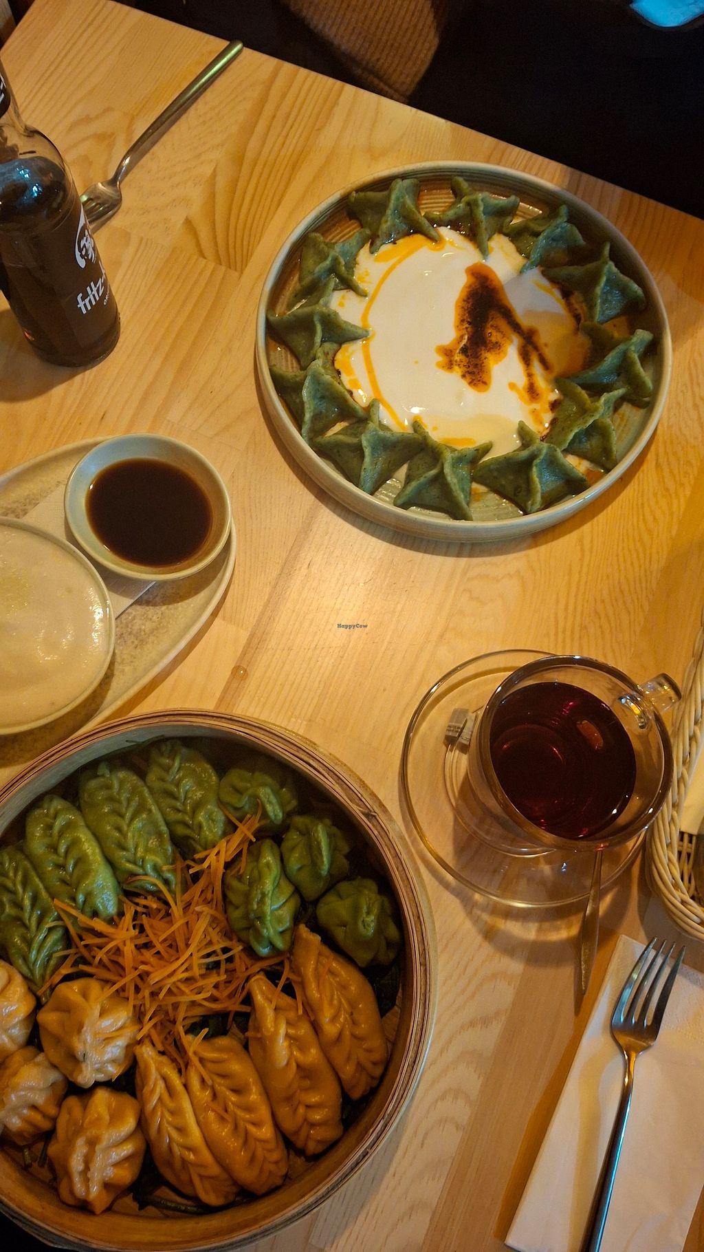 Serves meat, vegan options available. Dumpling and manti restaurant from Istanbul. Vegan options are marked. Choices include vegan mix plate, momos, and manti with potatoes or lentils. Open Mon-Sun 12:00-22:00.