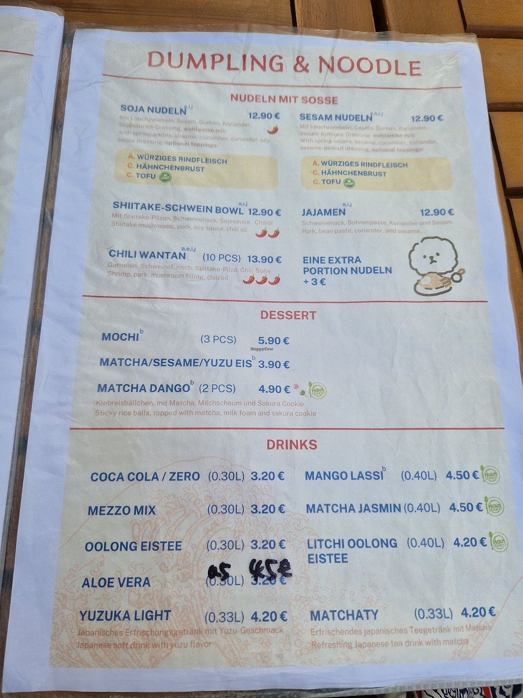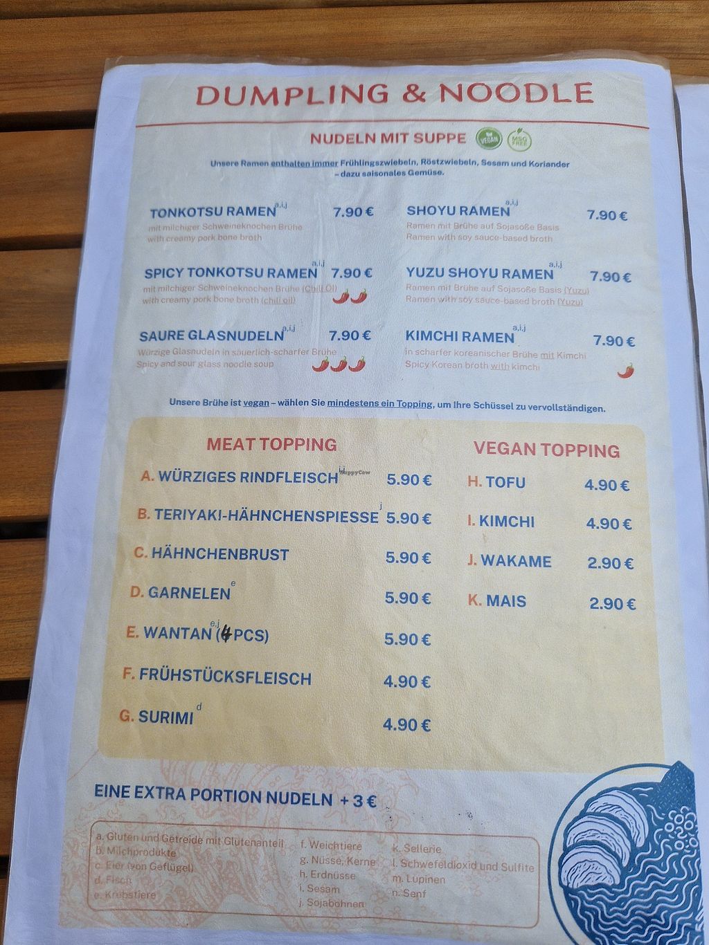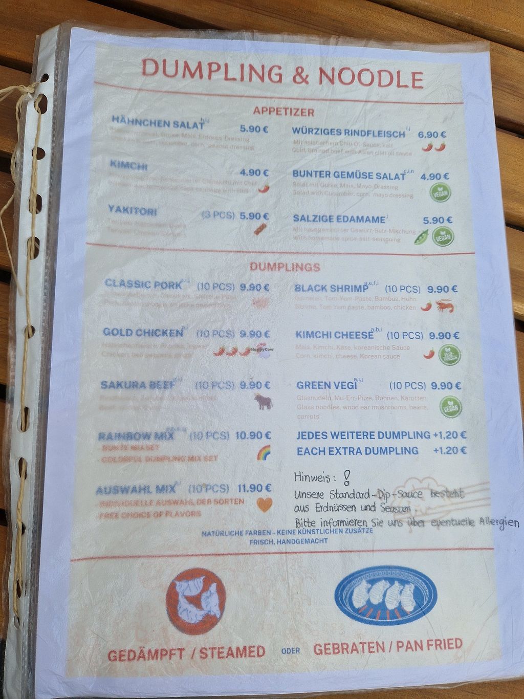 Serves meat, vegan options available. Asiatisches Restaurant. Bietet Dumplings, Nudeln in Suppe und Nudeln mit Soße an. Für alle Kategorien gibt es vegane Optionen. Es gibt sowohl Sitzplätze draußen als auch drinnen. Alles frisch und handgemacht., Dumplings mit Gemüsefüllung