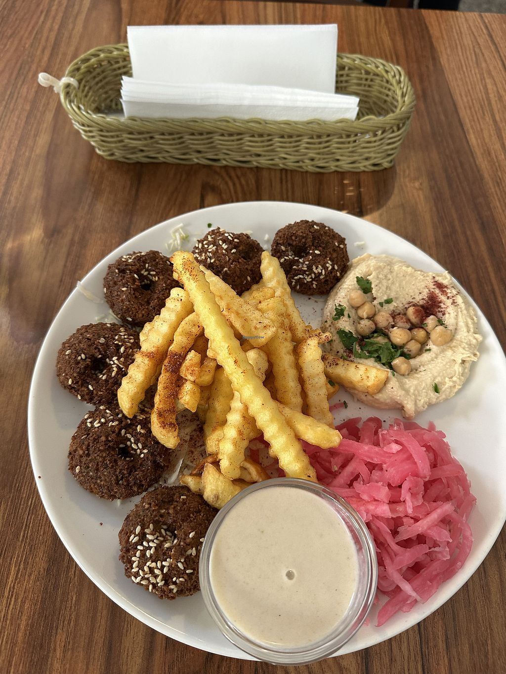 We went here today and was so good and filling and inexpensive. My fiance and I shared the premium falafel wrap and the arabesque vegan plate. The stars of the dishes were the falafels and the pickled red turnips! Will definitely be back.