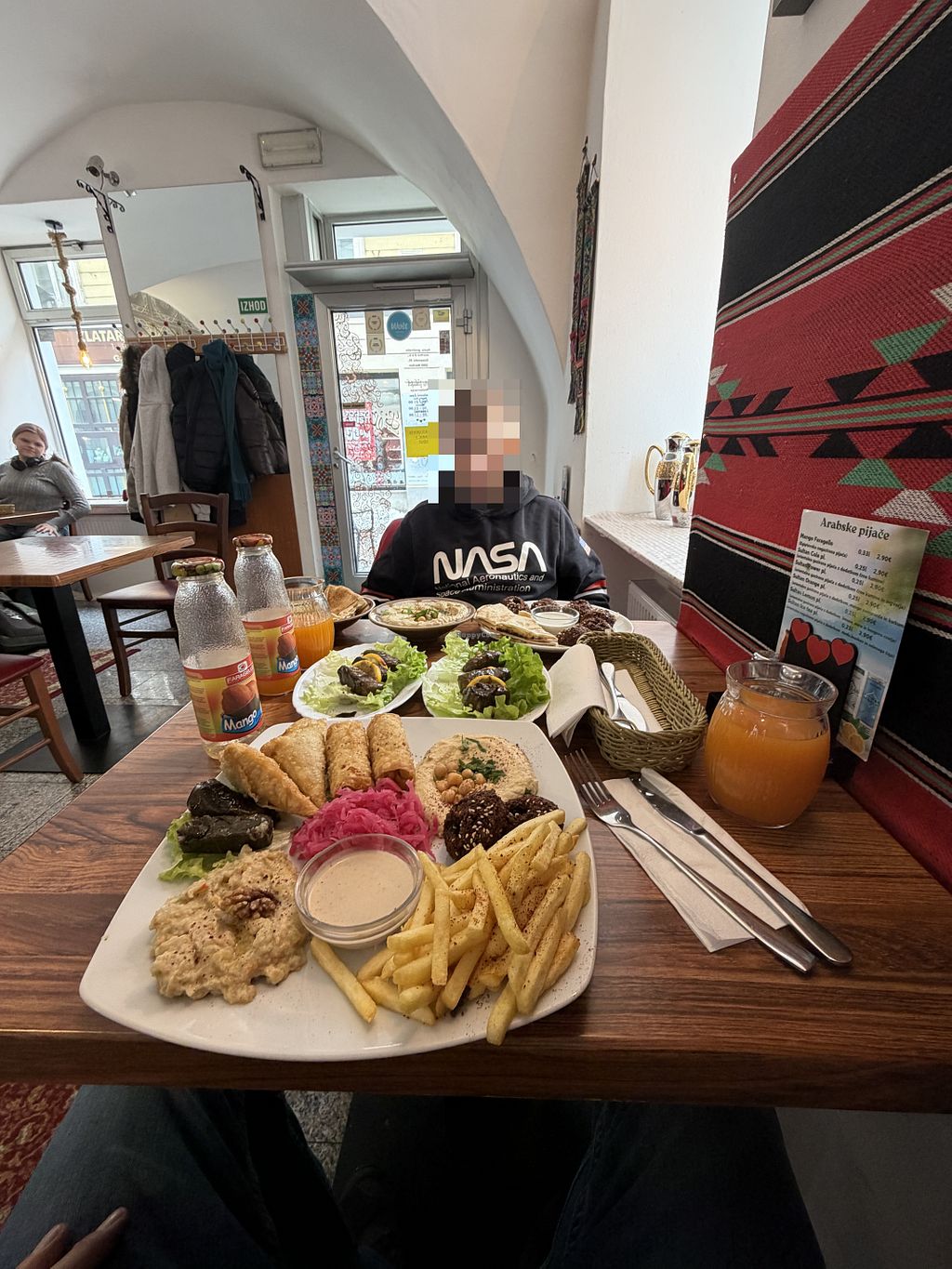 Falafel, vine leaf rolls, potato samosa and fried cabbage rolls