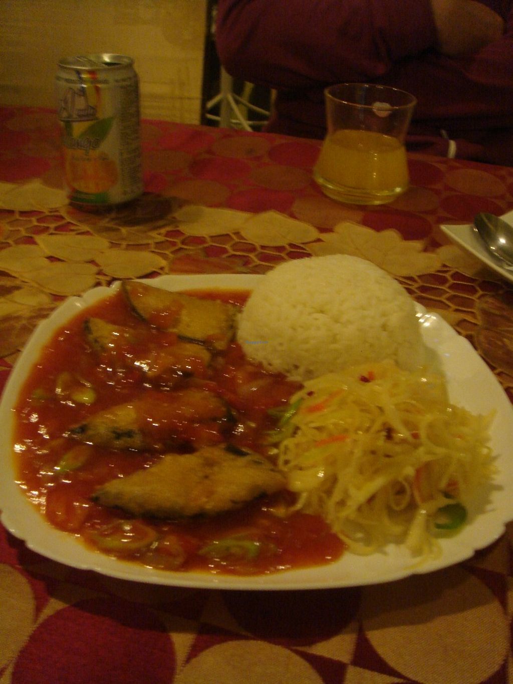 I've only been here once and tried one dish, but I really liked what I had. It was mock fish in sauce served with rice and slaw. It was a hearty dish that perfectly satisfied my hunger after an evening at the beer hall.