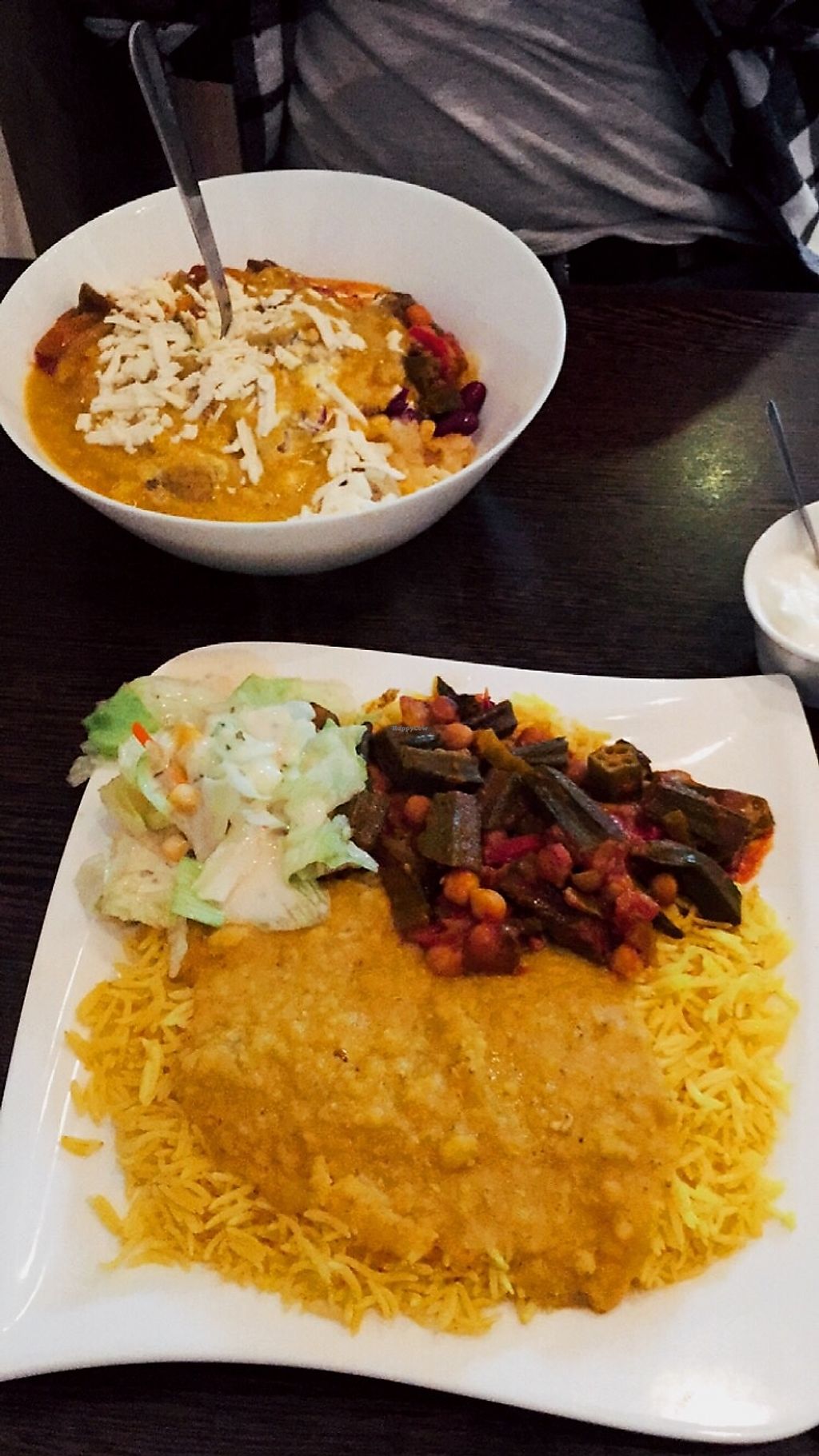 Read moreWir hatten eine gefüllte Kartoffel (vegetarisch, aber auch bestimmt auch vegan verstellbar ohne Käse und sourcream) und ein Reisgericht (vegan).