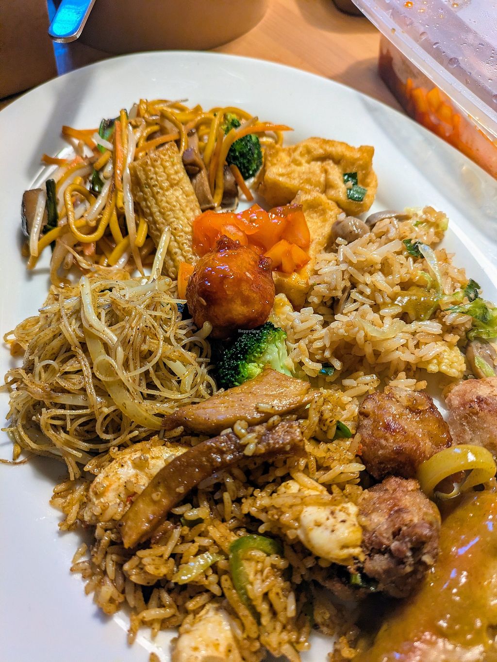 Yakisoba, no-cod, salt and chilli tofu and wakame