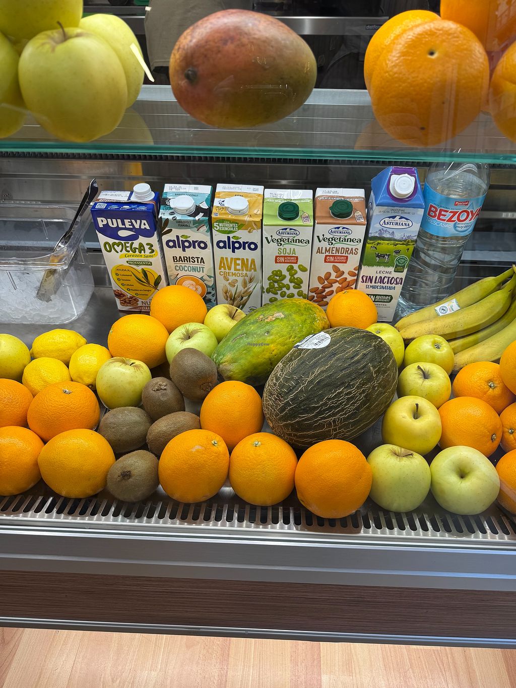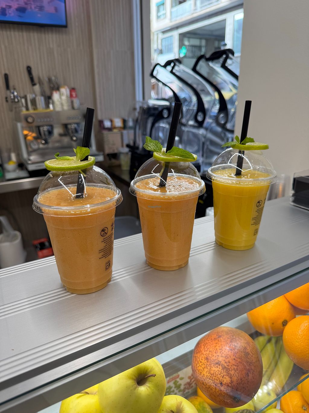 We tried a few smoothies between us, we chose to mix fruits with water but you can also choose milk - they have various plant-based options, like you can see on the picture. They also have a variety of matcha smoothies with fruits but I haven't tried it. On the pricey side (5€ for a small fruit smoothie - October 2025) but satisfying if you fancy fresh fruits on the go.