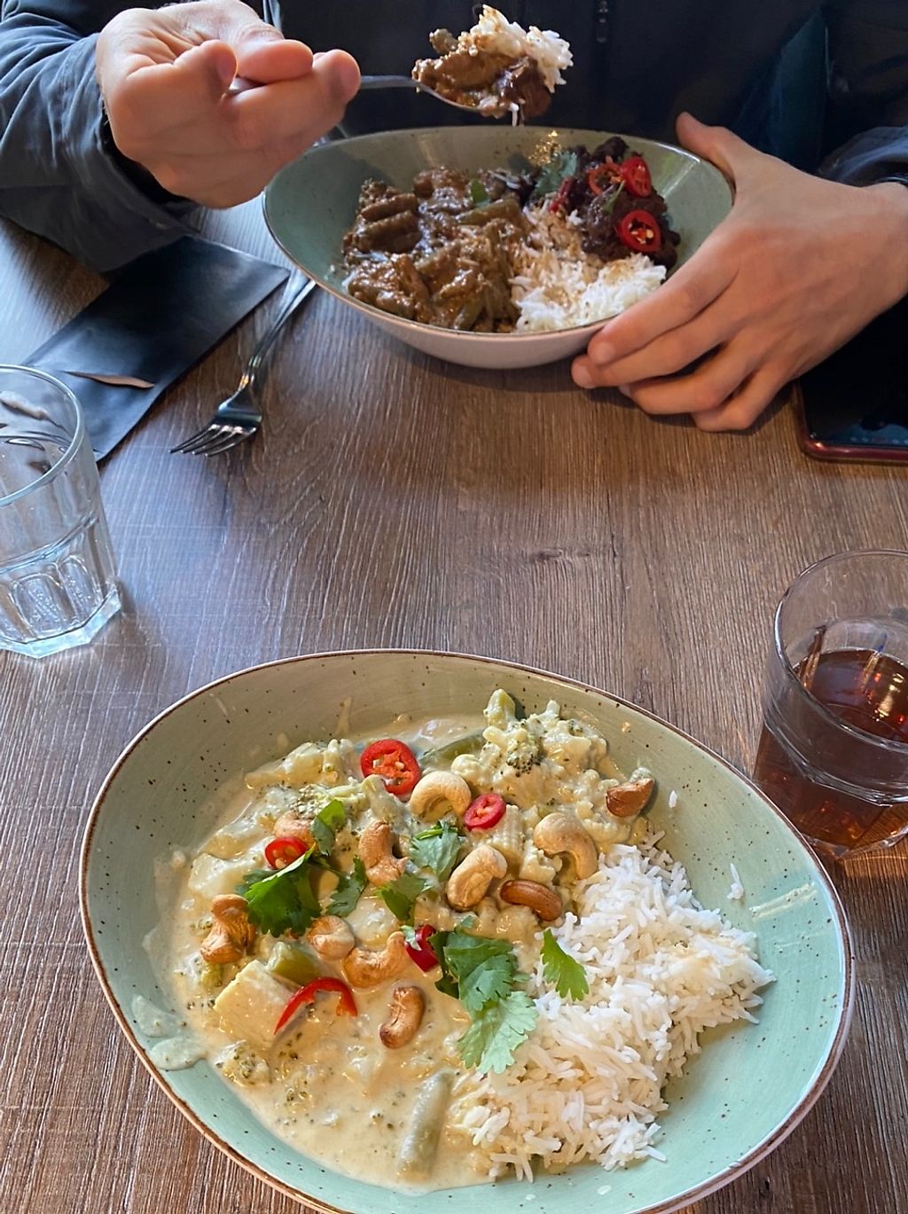We went here as tourists looking for some vegan food options in Apeldoorn. We had the Thai Coconut Curry, the Red Lentil Dahl, the Java Curry and the Orange Brownie. Everything was really tasty, had a decent price and the staff was very friendly & helpful. I would go again!