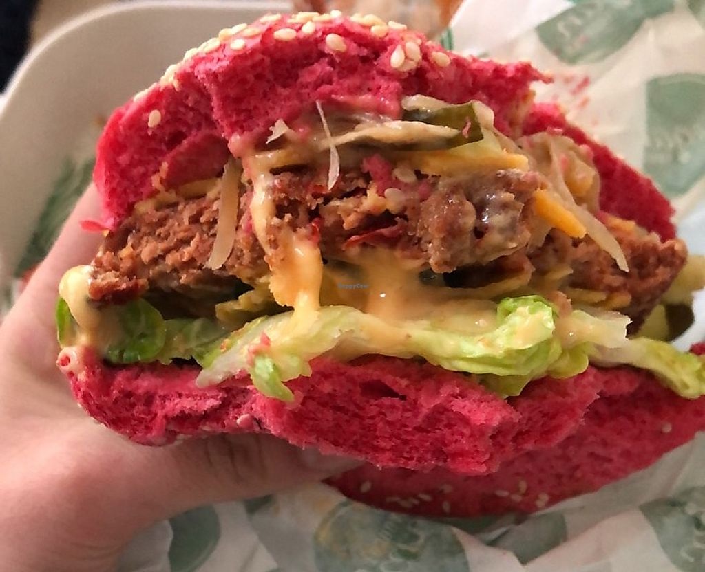 Had a delicious vegan chicken BBQ burger with sweet potato fries and sriracha mayo. Excellent choice if you're craving some junk food!