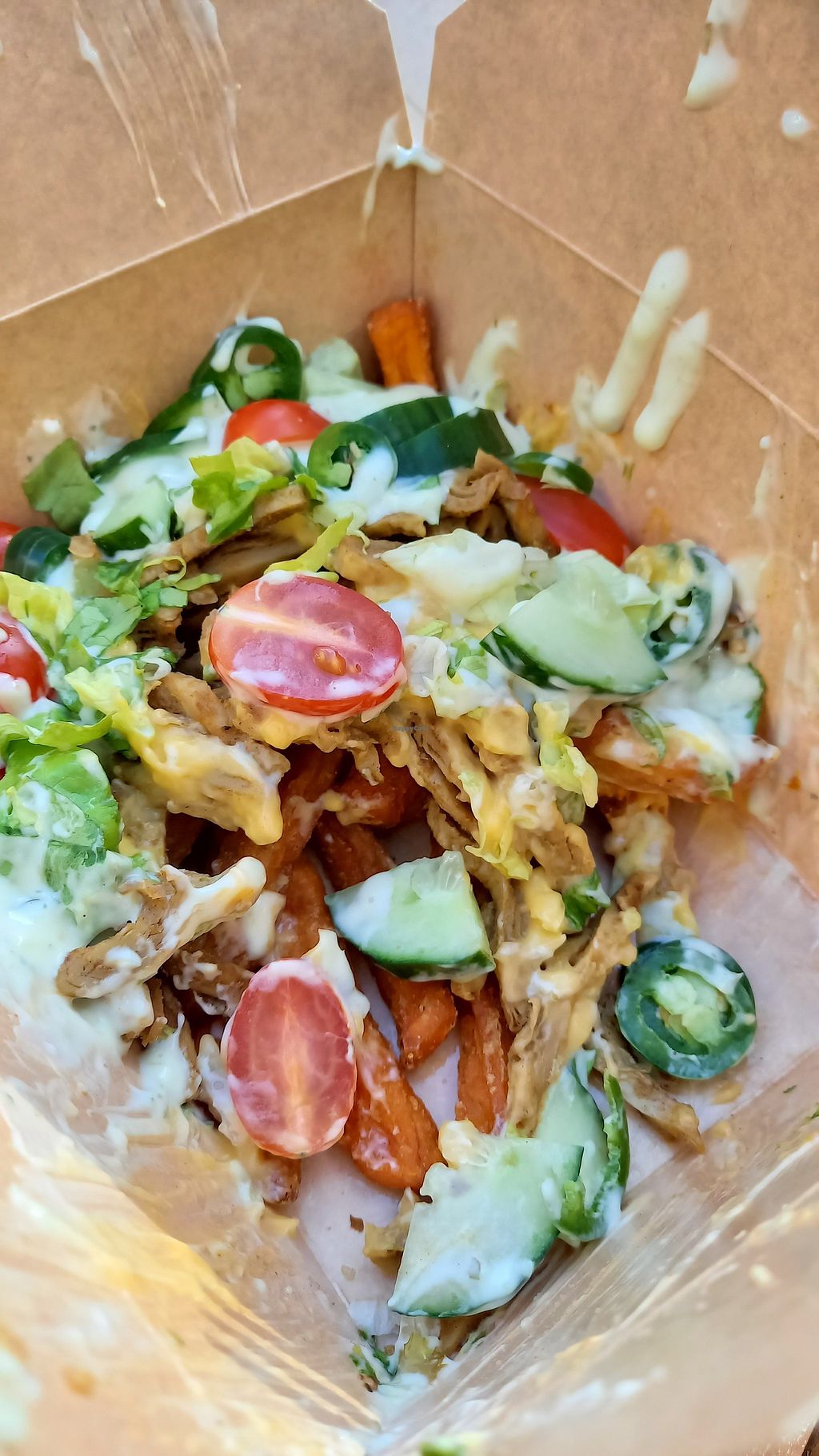Met mijn man allebei de kapsalon gegeten. Lekkere patat met alles erop en eraan. En glutenvrij.