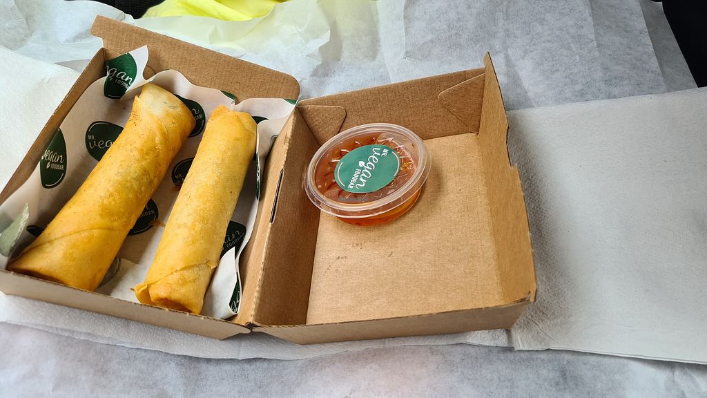Two fried spring rolls with sweet chili