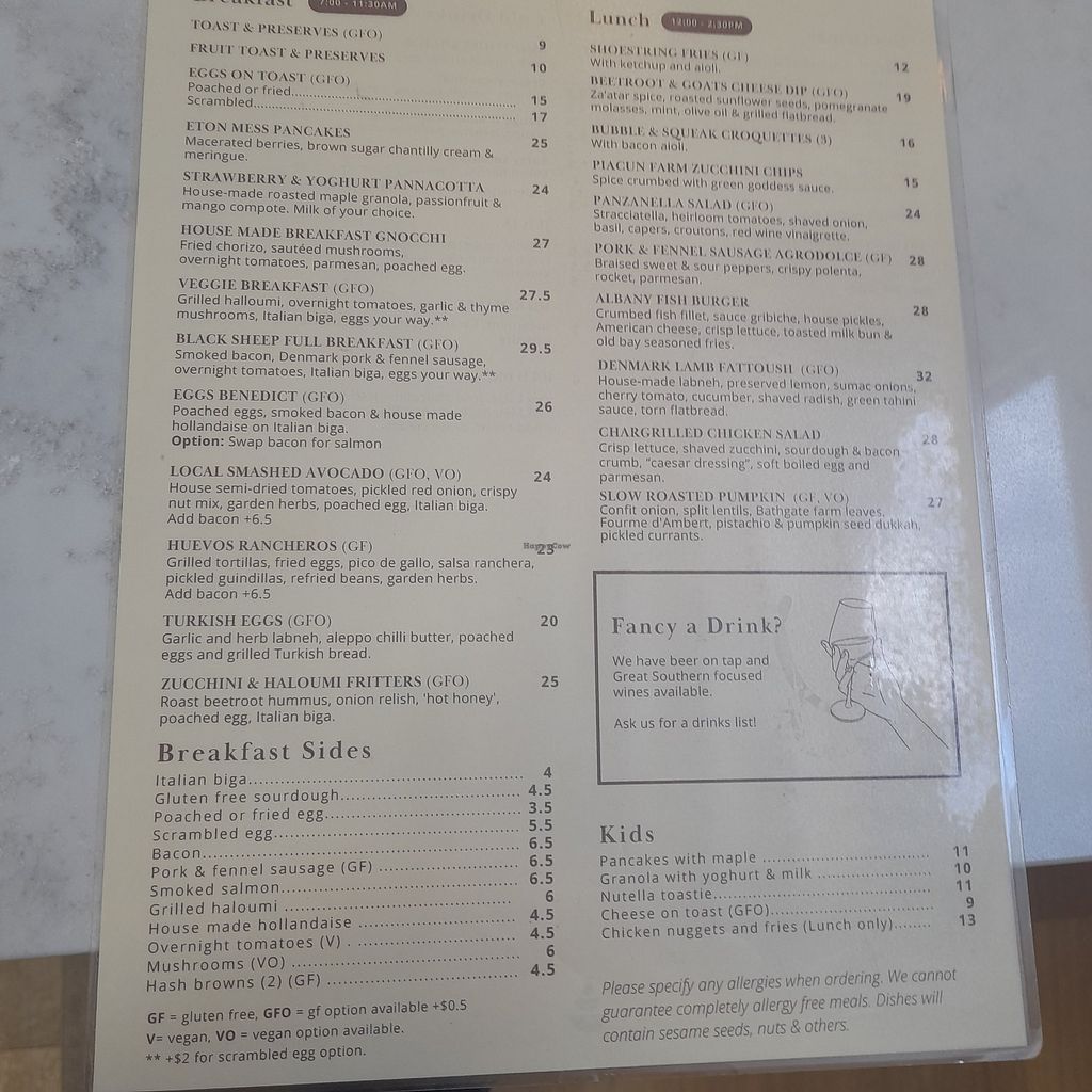 Menu/ outdoor uncrowded seating