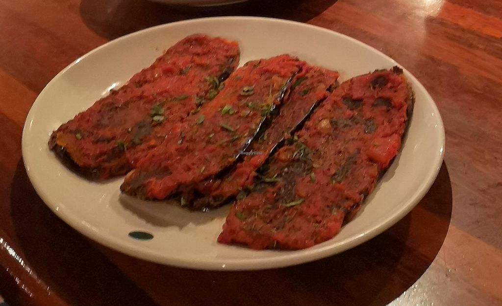 This restaurant has separate vegetarian and vegan menus. The vegan parma option was aubergine slices in breadcrumbs with a sauce of your choice. The sauce was more like a very thin spreading, and no vegan cheese, speaking of thin the aubergine slices were very thin too. However it tasted OK. The restaurant is well known for also serving craft beers, I was looking forward to a beer and parma. I asked two staff members which beer were vegan, but neither of them knew. Then I spoke to the manager, he didn't know at first, but then said he was pretty sure all the beers were vegan as he said there are no animal ingredients in beer. So for obvious reasons I didn't have a beer! Disappointed that they have a vegan menu but this does not include the craft beer, or any beer or cider that they sell. If WiFi is available I could have googled the beer brands myself to find out, but there was no WiFi either.