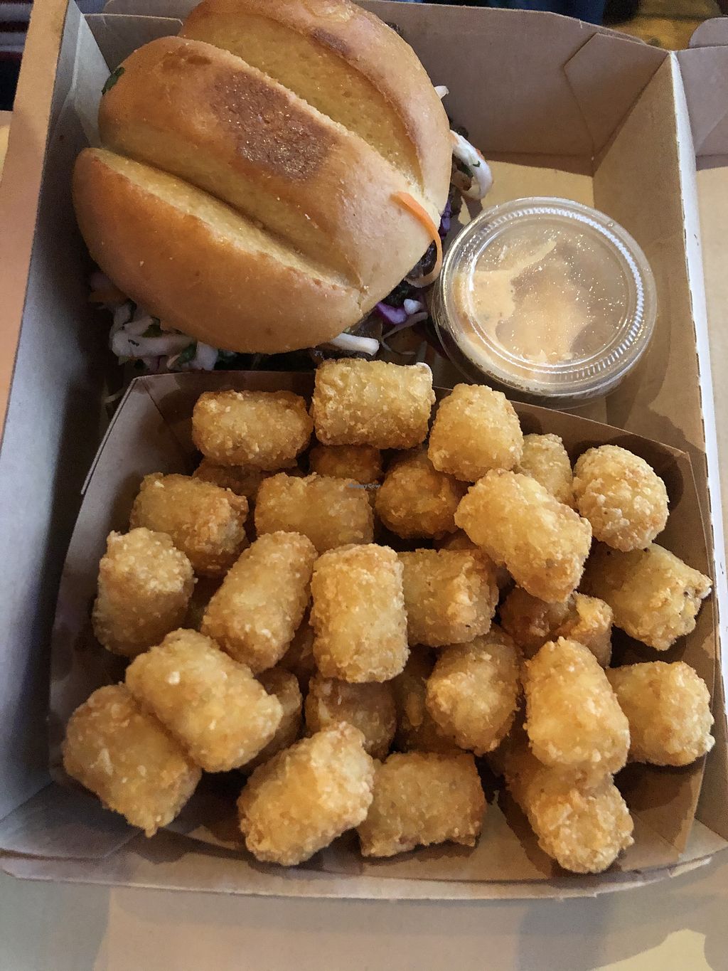Delicious food, good amount of options, all vegan, highly recommend the tater tots and the tofu coconut curry bowl. Only downside is the small amount of tables available to eat in. Another downside is that it isn’t not the most eco-friendly place as all served in single-use items.