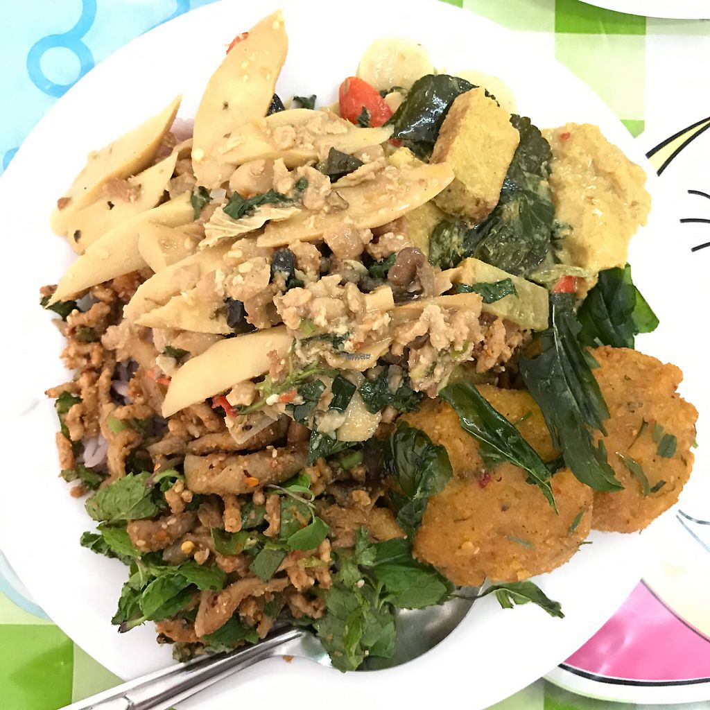 Small jae (veg) place on the small alley that goes parallel with Chomsin road which is also known as Hua Hin 70. Serves rice and a selection of curries, stews, and mock meat. Reported closed May 2023.