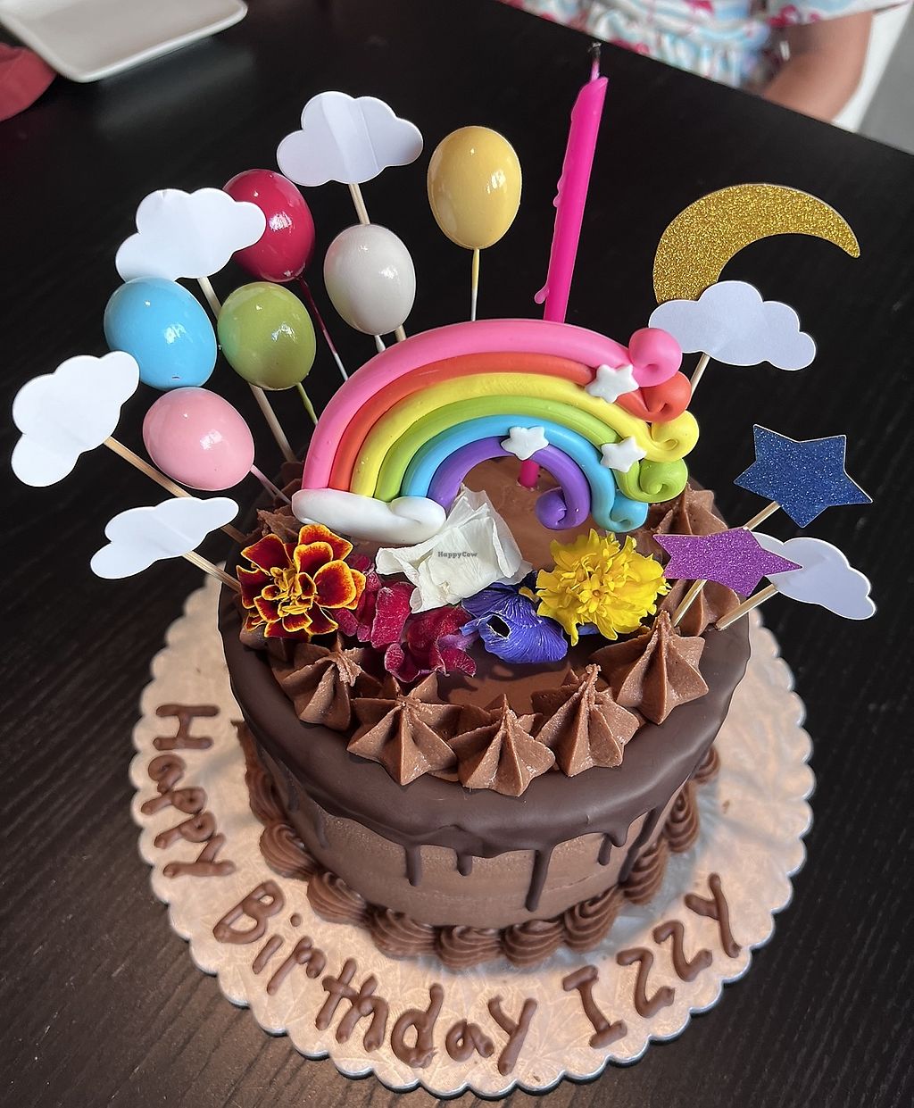 Chocolate frosting with vanilla cake (they sell cake toppers)