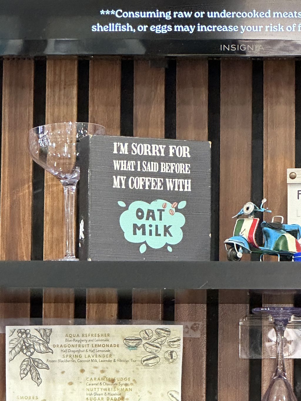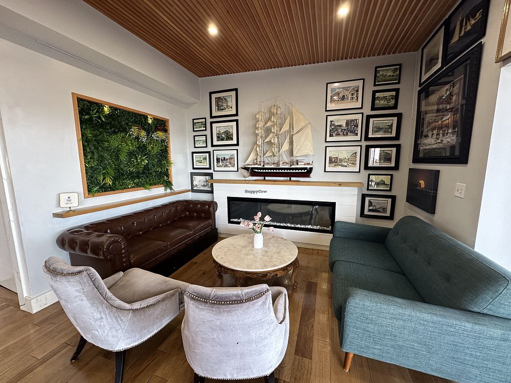 Came to just get coffee and oatmeal. Make sure to specify what type of milk you want - almond, oat, or none - otherwise they will use cow milk by default. Had vegan blueberry scones. They were hot and delicious! Indoor and outdoor seating. Outdoor overlooks water. 5 different brews of coffee.