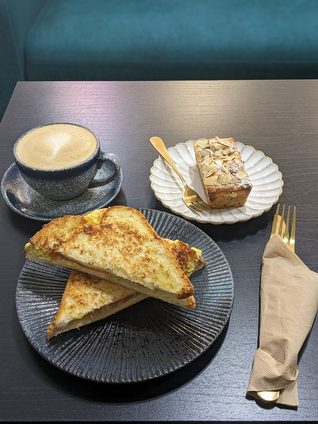 I had a delicious breakfast toasty and an almond croissant slice for dessert! Yum!