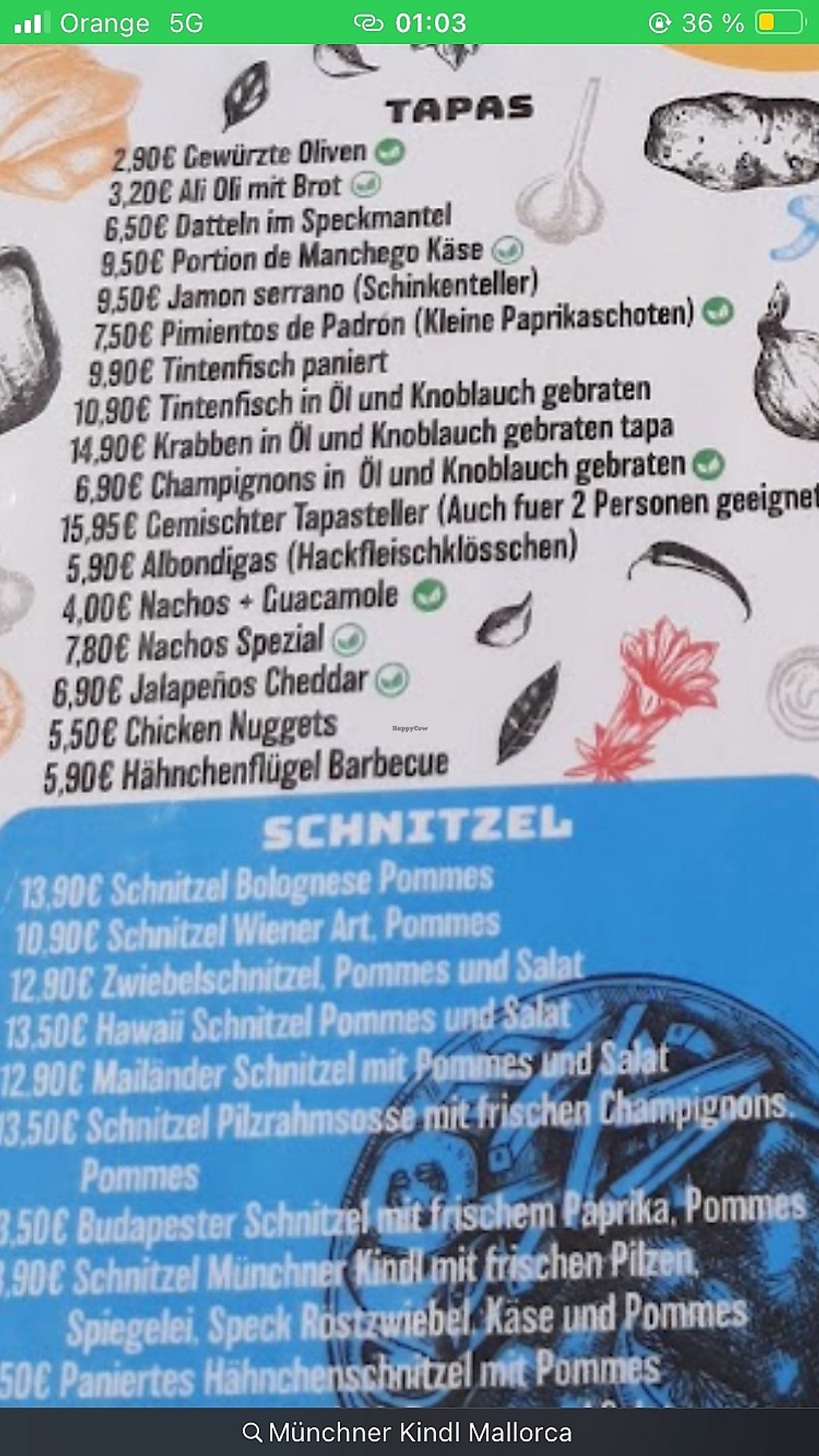 Serves meat, vegan options available. German and Spanish restaurant offering clearly marked vegan choices such as tapas, paella, burgers, salads and sides. Open Mon-Sun 11:00-23:00.