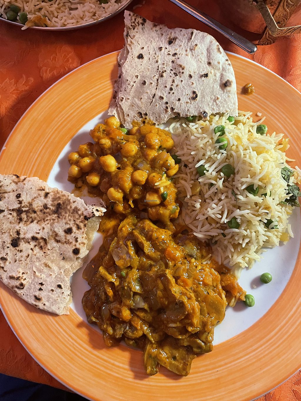 Peas rice, mushroom masala and chana masala