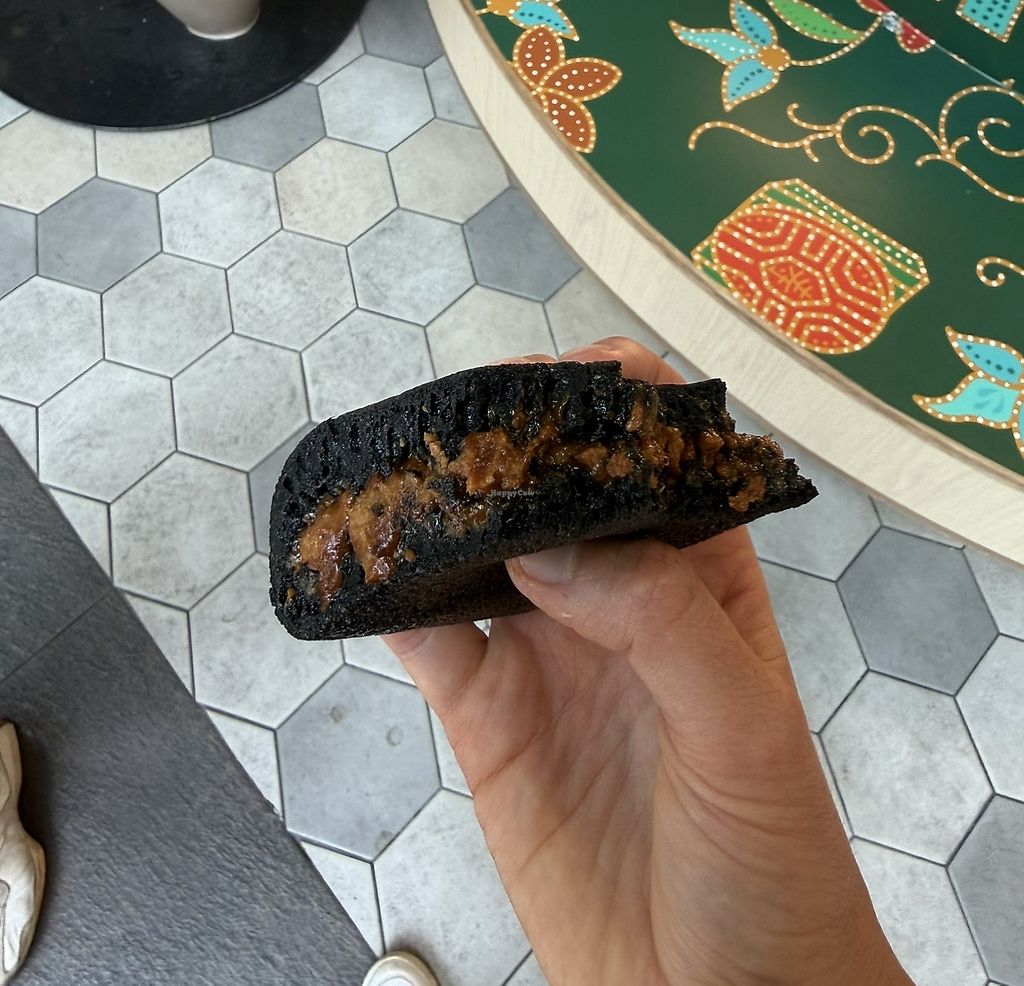Charcoal pancake with biscoff filling