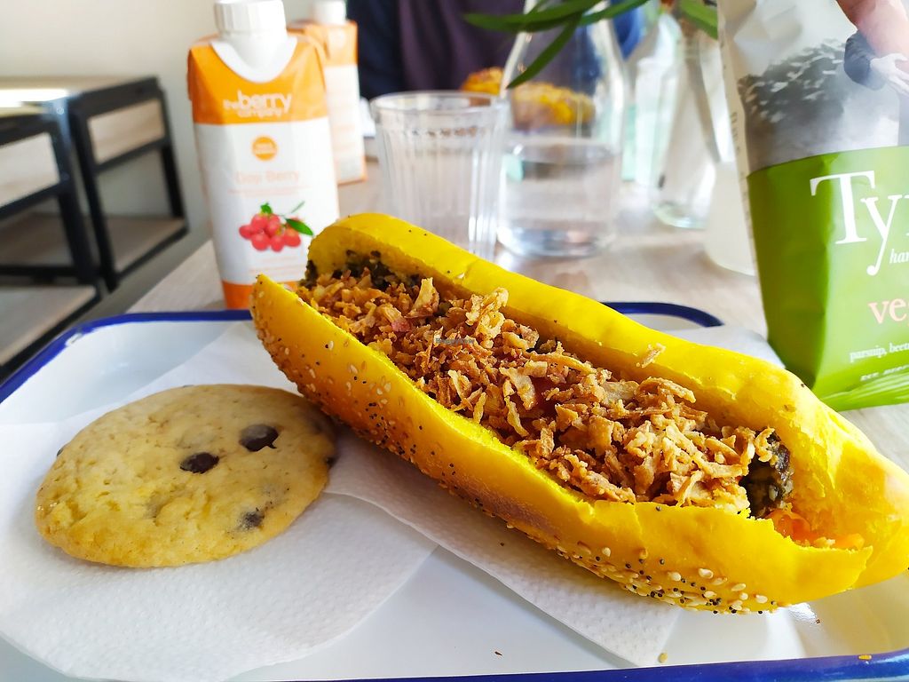 Vegan restaurant serving hot dogs, and pastries. Uses organic and local products. Est. Sep 2016. Every 1st Saturday of the month vegan brunch from 12am to 4pm (reservation only). Reported closed November 2022.